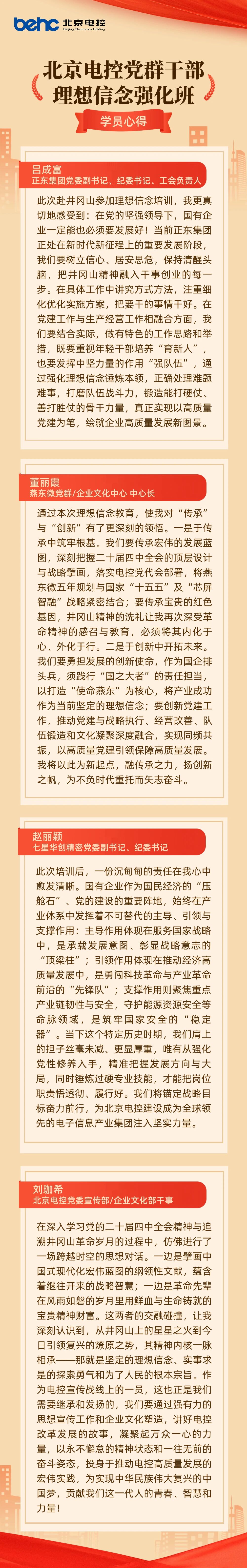 此次井冈山理想信念强化班不仅为马博平台_马博(中国)一站式服务平台全系统党群干部补足了精神之“钙”,更在每个人心中播下了传承红色基因、践行使命担当的种子。四天的沉浸式学习与深度研讨,让学员们收获满满、感触颇深,培训落幕之际,全体学员纷纷结合岗位实践畅谈收获,字里行间充满了对井冈山精神的深刻体悟,更饱含推动“芯屏智融”产业发展的坚定决心。