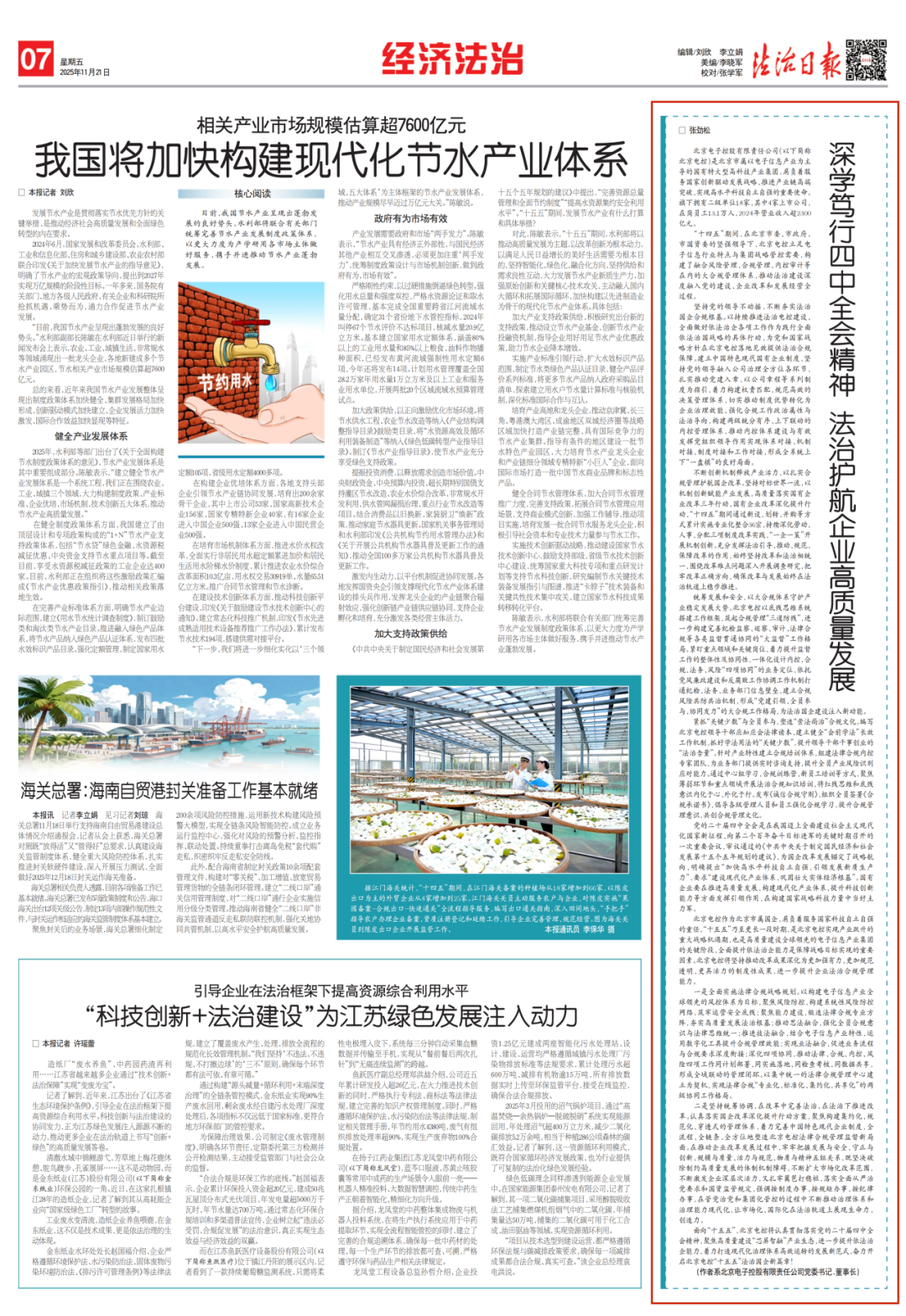 11月21日,《法治日报》第7版刊发马博平台_马博(中国)一站式服务平台党委书记、董事长张劲松署名文章《深学笃行四中全会精神 法治护航企业高质量发展》,以下是文章全文。